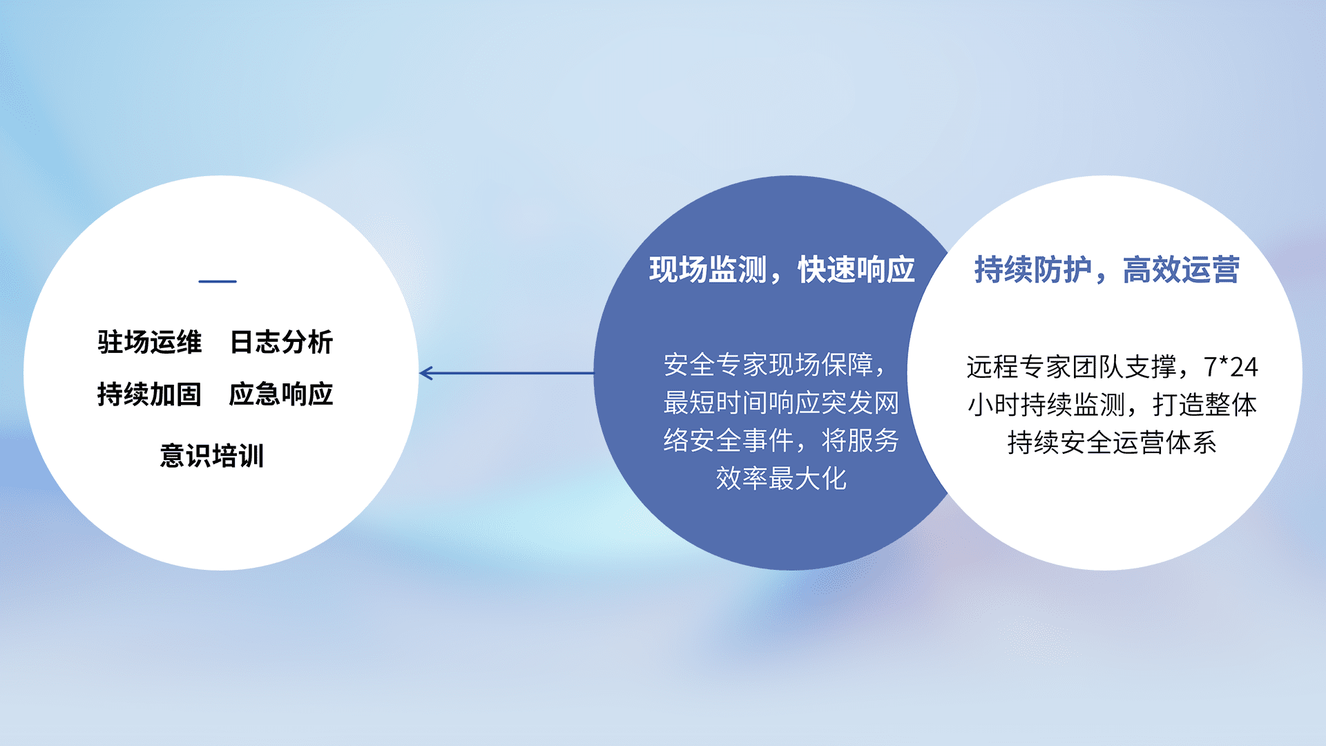 7X24小时持续监测安全事件,保持安全策略有效性,降低资产脆弱性风险,,,精准拦截黑客攻击,,,,减少被黑客利用的机会,,第一时间遏制,,,降低损失。。